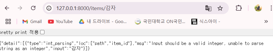 정수형 자리에 문자열이 들어왔다고 알려준다.