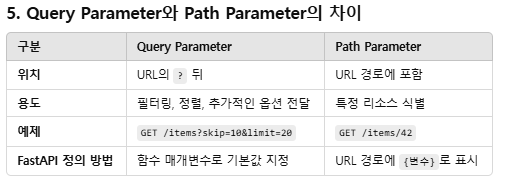 - Path Parameter와 Query Parameter 이해 및 사용.